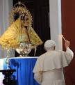 | Benedicto XVI orando ante la Vigen de la Caridad del Cobre |